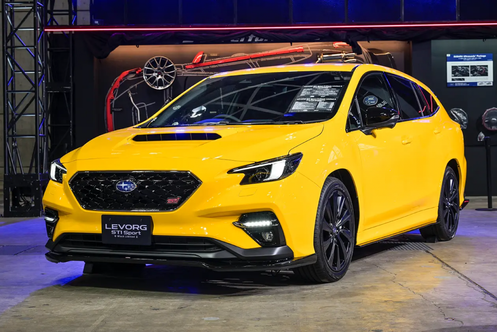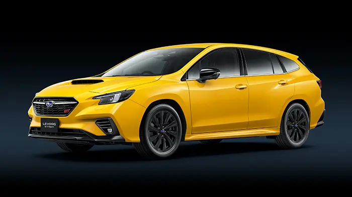 このモデルの最大の特徴は、特別設定された「サンライズイエロー」です。さらに、スバルのイメージカラーである青とは対照的な、情熱的で力強いイエローが、スポーツワゴンとしての存在感を際立たせます。
